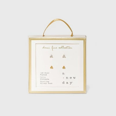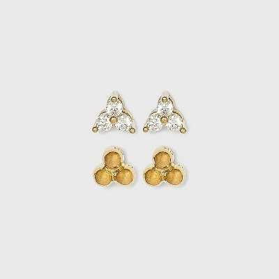Give your favorite outfits a sparkly upgrade with the 14K Gold Plated Cubic Zirconia Ball Cluster Stud Earring Set from A New Dayâ„¢. This set comes with two pairs of earrings, both with a 14k gold-plated, nickel-free metal structure. The other pair includes a cubic zirconia stone detail that adds an extra shiny charm to your style. A post-clasp closure helps keep these earrings in place as you go about your day in style.