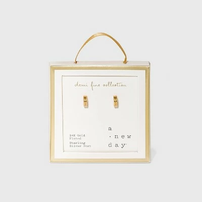 Accessorize your favorite outfits with the 14K Gold Plated Ridge Hoop Earrings from A New Day™ for a cute and chic look! These lovely earrings are made out of 14K gold-plated, nickel-free metal and feature a polished finish for the perfect touch of shine and sparkle in your outfits. A post closure helps keep them in place as you go about your day in style.
