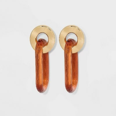 Add elegant flair to any casual or formal outfit with these Circular Post with Oval Drop earrings from A New Day™. These classy drop earrings get a chic look from crystal-like oval pendants with ridges that give off a beautiful shine in the light. They come in three different colors — turquoise blue, a bronze orange-brown and simple white — providing you with a variety of wear options. The pendants hang from a gold-finished post, excellent for pairing with other gold-finished jewelry in your collection. The post backs make them easy to wear, and they’re nickel-free to help prevent irritation.