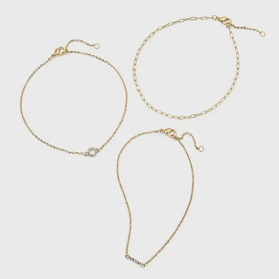Accessorizing your warm-weather ensembles is easy with the Crystal and Chain Anklet Trio Set from A New Dayâ„¢. This set of anklets includes three anklets, each made from gold-tone metal for just the right touch of shine. One anklet has a simple chain-link look, while the other two have delicate cable chains accented with a circle of crystals on one and a bar of crystals on the other for a little sparkle. Each anklet makes a simple yet pretty accessory on its own, or you can create a more striking look by wearing all three together. In addition to their lovely look, you’ll appreciate the nickel-free metal that makes them comfy even for sensitive skin, as well as the length of extender chain that lets you adjust the fit to best suit you.
