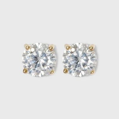 Accessorize your dress with these Cubic Zirconia Round Stud Earrings with 14k Gold Plating over Sterling Silver from A New Dayâ„¢ Gold. This pair of fine jewelry earrings, showcasing a round-cut clear cubic zirconia stone held in a secure four-prong setting, is both simple and elegant. Enhanced with a touch of gold, these beautiful sterling silver earrings add shine to your everyday looks. Pair these earrings with your favorite outfits to a add a touch of dazzle to any of your looks.