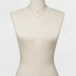 Add simple style to your day or evening looks with this Delicate Layered Necklace from A New Dayâ„¢. Designed with two chains in varying designs, this gold-tone layered necklace makes a stylish addition to your accessory collection. The top layer is adorned with a white-stone pendant for a standout appeal. Easy to secure with the adjustable-length lobster claw clasp closure, this princess-length necklace is perfect for any outfit.