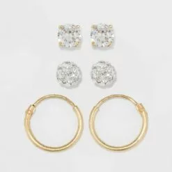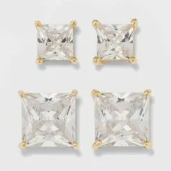 Gold Over Sterling Silver Round Cubic Zirconia Stud Fine Jewelry Earrings – A New Day™ Gold/Clear