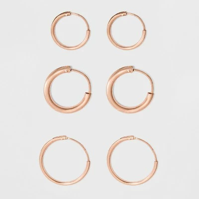 - 3-pair earring set includes rose gold-finished hoops in different sizes