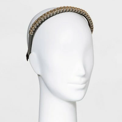 Update your hair accessory collection with this Faux Leather Chain Headband from A New Dayâ„¢. This leather-look headband in a solid color makes a versatile pick to match any outfit. This headband features a faux-leather base accented with chain detailing for a pop of chic flair. Plus, the fashionable headband neatly secures and styles your hair with a comfortable fit, and it’s suitable for all hair types.