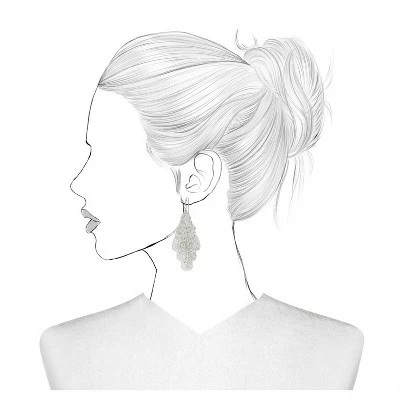 - Silver-finish drop earrings feature beautiful, intricate detail