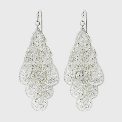 Dress up in glamorous style by adding these Filigree Kite Earrings from A New Day™ to any outfit. These silver-finish drop earrings feature an intricate pattern of interlocked droplets cascading from simple fish-hook fixtures, offering stunning style and easy wear. Made from nickel-free metal for comfortable use, these shiny drop earrings go perfectly with almost any look. Whether you’re headed out in jeans and a tee or dressed up in a party gown, these earrings will give all of your outfits a touch of elegance.