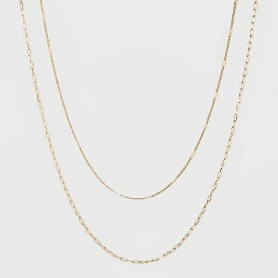 You’ll love the simple elegance of this Gold-Tone Station Chain Necklace Set from A New Dayâ„¢. This double chain necklace set is comprised of one delicate station chain in a shorter length alongside a longer paper-clip chain that looks great on its own or with the addition of some of your favorite charms. Each chain is rendered in a high-polish yellow gold-tone finish for a warm glow, and the slightly different lengths complement each other perfectly when worn together in a layered look. Each necklace closes with a lobster clasp for secure wear, so you can style them with confidence no matter the occasion.