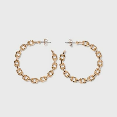 Add a chic vibe to any outfit with these Gold Linked Hoop Earrings from A New Dayâ„¢. These round hoop earrings make a perfect accessory for any occasion. They feature an interlinked chain design in a gleaming gold tone to add edgy texture and a dose of extra shine to your everyday looks. These lightweight hoop earrings come with post-back closures for secure, easy and comfortable wear, and are made from nickel-free metal to suit most skin types. Wear them with a wrap dress and heels for a night out or wear with a simple jeans and tee combo for a chic finishing touch to your casual ensemble.