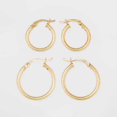 The Gold Over Sterling Silver Hoop Fine Jewelry Earrings from A New Day™ are a great addition to your jewelry collection. This earring set includes two pairs of hoop earrings in slightly different sizes, so you’ll have just the right accent for any occasion. Made of sterling silver with gold plating to add a touch of shine to your looks, the hoop earrings are easy to pair with a variety of outfits from work to casualwear.