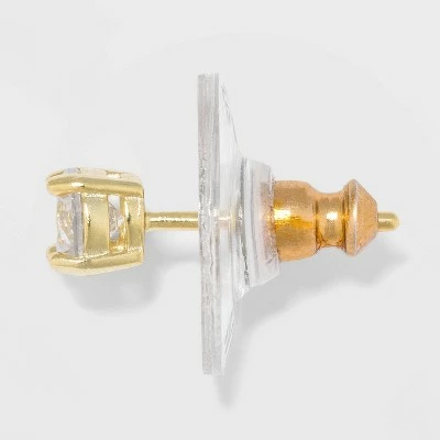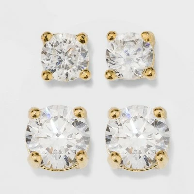 Add a stunning touch of sparkle to your look with these Gold/Clear Gold Over Sterling Silver Round Cubic Zirconia Stud Fine Jewelry Earrings from A New Dayâ„¢. This set of cubic zirconia studs in two different sizes gives you options to choose from. Showcasing round-cut clear cubic zirconia stones held in a secure four-prong setting, these brilliant earrings are both simple and elegant. Enhanced with a highly polished finish and a touch of gold, these beautiful sterling silver earrings add shine to your everyday looks, and make for a sparkling accessory you’re sure to love. Effortlessly complement any of your casual or formal outfits with their dazzling classic look.