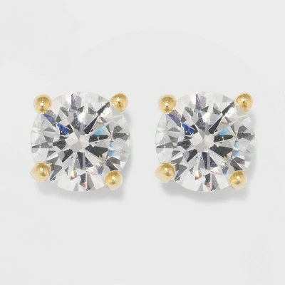Accessorize your dress with these Gold Over Sterling Silver Round Cubic Zirconia Stud Fine Jewelry Earrings from A New Dayâ„¢. This pair of fine jewelry earrings, showcasing a round-cut clear cubic zirconia stone held in a secure four-prong setting, is both simple and elegant. Enhanced with a touch of gold, these beautiful sterling silver earrings add shine to your everyday looks. The post back closure allows for easy wear, while the versatile classic styling makes them suitable for any occasion. Pair these earrings with your favorite outfits to a add a touch of dazzle to any of your looks.