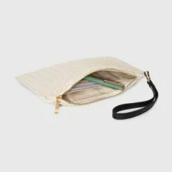Carry everything from your phone to cash and more in style with this Natural Large Pouch Clutch from A New Dayâ„¢. This large-sized pouch clutch in a neutral cream color makes a practical and versatile accessory for everyday use. It features a rectangular structured shape that’s decorated with allover stitched detailing for a chic textured look. The zipper closure to the main compartment helps keep your items contained, and it opens to reveal a cell phone pocket and credit card slots to make organization neat and simple. Plus, the attached loop strap makes for easy carrying.