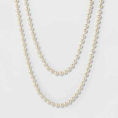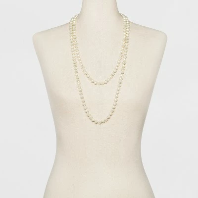 Add some sophistication to your outfit instantly with this Long Faux-Pearl Necklace from A New Dayâ„¢. This layered pearl necklace features two strands, and looks great its own or paired with other jewelry. Dress this long pearl necklace up with a flowy blouse and pencil skirt or dress it down with a button-down chambray dress — however you style it, you’re sure to look chic.