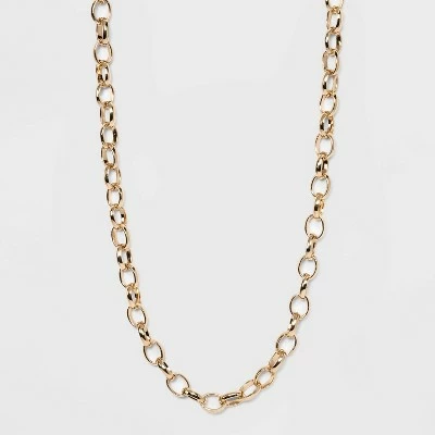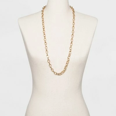 Add a staple piece to your jewelry collection, like the Long Metal Chain-Link Necklace from A New Day™, that will complement any outfit of yours, dressy or formal. Featuring nickel-free metal for comfortable wear, this long chain necklace is made of chunky round chain links in a gold finish for an elegant shimmering accent that is sure to add a little something extra to your look. It’s a timeless, stylish piece that will work great on its own, and can be easily layered with other necklaces for a bold statement.