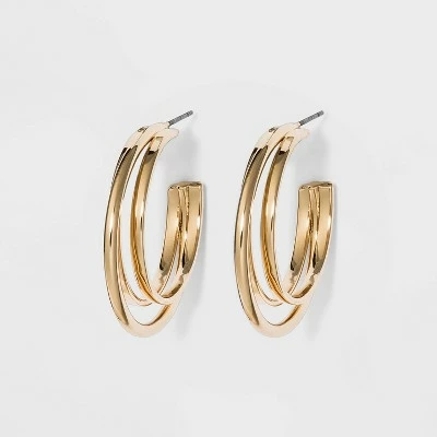 You’ll love adding these Metal Double Hoop Earrings from A New Dayâ„¢ to casual and dressy outfits alike. With a 1-inch size for simple and versatile styling, these double hoops look great whether you’re pulling your hair back in a ponytail or rocking a down or part-down style. The hoops are made of nickel-free surgical steel and zinc for comfortable wear, and feature a shiny gold finish that coordinates with tons of color palettes and other jewelry for lots of styling options. Post back closures make for easy on and off as you go about your day.