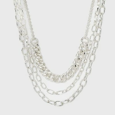 Create a stunning look to finish off tons of different outfits wearing this Multi Row Layered Chain Linked Necklace from A New Day™. This layered necklace features connected chains of varying lengths to bring extra visual appeal, texture and a hint of shine to your outfits. Whether worn alone or mixed and matched with coordinating earrings and bracelets, this choker necklace helps you create a statement style.