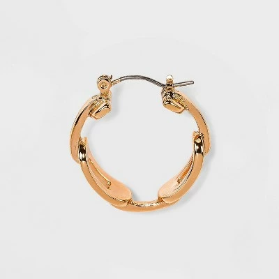 Give your jewelry box a fashionable update with the unique look of these Oval Hoop Earrings from A New Dayâ„¢. Two flat chain links adorning the earrings lend them textured flair that you’ll love pairing with a variety of looks, and the gold finish adds a touch of elegance and makes them easy to incorporate into nearly any outfit. The post closures let you take them on and off with ease, and the nickel-free construction is suitable for most skin types.