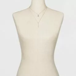 Add a subtle pop of style to your outfits with this Pave Circle and Thin Bar 2-Row Short Necklace from A New Dayâ„¢. This shiny, gold necklace features two lightweight chains of different lengths, each embellished with rhinestones and a simple bar to give you a polished, layered look. With a lobster-claw closure for a sure fit, this dainty design adds a feminine flair to this pendant necklace. Slip it on over a flowy, full-length gown for a chic party-ready look.