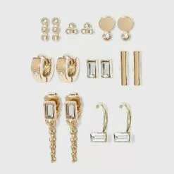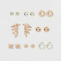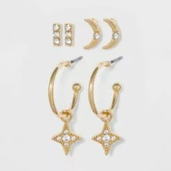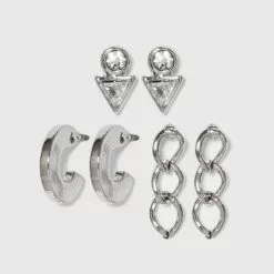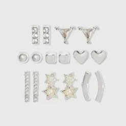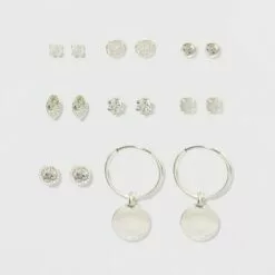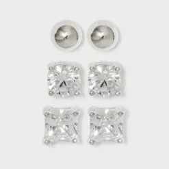 Cubic Zirconia and Sterling Silver Round and Square Stud Earring Set 3pc – A New Day™ Silver/Clear