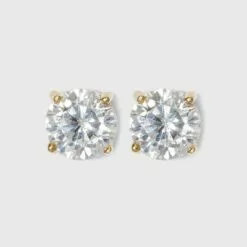 Cubic Zirconia Round Stud Earrings with 14k Gold Plating over Sterling Silver – A New Day™ Gold