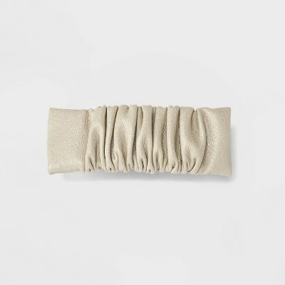 Rock an extra-chic, feminine aesthetic by clipping your hair with this Ruched Faux Leather Barrette Hair Clip from A New Day™. The back clip is covered by a rectangular piece wrapped in gorgeous faux leather in a solid hue for a flattering, elegant design that’s great for keeping any updo in place. Plus, the ruched construction of the fabric adds textural flair for a dynamic, unique look you’ll love pairing with all kinds of outfits, whether casual or formal.