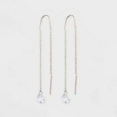 These Round Clear Crystal Threader Earrings from A New Dayâ„¢ are sure to add sweet flair to your outfit every time you want to step out in style. These metal threader earrings have a silver finish along with a round cubic zirconia to add a touch of shine to your look. Nickel-free construction makes them compatible with a variety of skin types, and with a drop length of just over two inches, you’ll simply love the extra style they bring to any outfit.