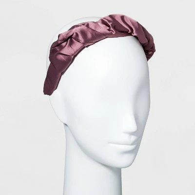 - Solid-hued headband in a shiny satin finish
