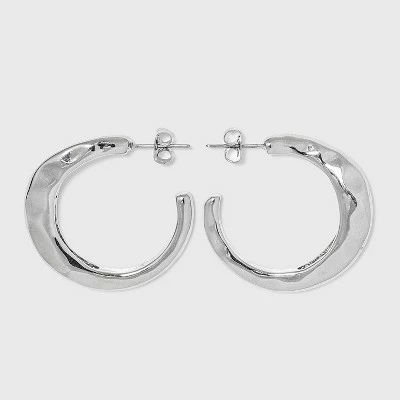 - Flat hammered hoop earrings make a fashionable jewelry accessory