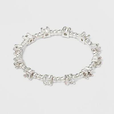 Bring some glam to your everyday look with the Silver-Plated Cubic Zirconia Textured-Band Ring from A New Dayâ„¢. This silver-finished ring features connected spheres dotted with sparkling cubic zirconia stone in silver-finished settings. Wear on its own to let it shine or stack with other rings to create a look that’s all your own.