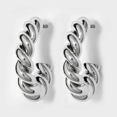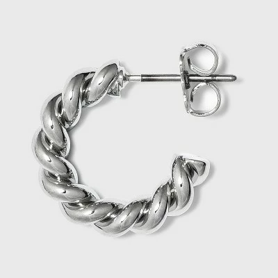 Add just the right amount of texture and shine to your everyday or wear-to-work styles with the Small Textured Hoop Earrings from A New Dayâ„¢. Set on post-back earring hardware, these lightweight earrings are easy to wear and coordinate effortlessly with your existing jewelry collection. These open-hoop earrings boast a twisted rope-like design, where it looks like two strands are twisted around each other for an updated, eye-catching look you’ll love. Pair these silver-tone earrings with anything from leggings and a relaxed tee to a crisp button-down shirtdress for easy style you’ll come back to again and again.