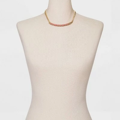 The Snake Chain Necklace from A New Day™ is a sleek, stylish must-have for your accessories assortment. This choker-length necklace features a gold-finish snake chain embellished with an enamel-and-gold coiled design at the center for a truly bold, boho look. A lobster-claw clasp fastens the chain at the back, along with an extra length of chain for customizable wear. Toss it on top of your regular shirt-and-jeans combo, or add it to your shift dress for an instant pop of color and style.