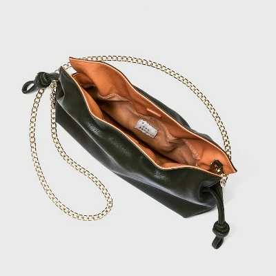 Add the perfect amount of style and function to your everyday or dressy looks with the Magnetic-Closure Soft Clutch from A New Day™. Made of faux leather in a solid hue, this soft textured bag has a spacious main compartment to stash your essentials, and it cinches closed with drawstring pulls, while the magnetic closure keeps items from falling out. Complete with an adjustable and removable gold-tone chain strap, this fashion bag can be carried in your hand, over one shoulder or across your body to suit your style and your day.