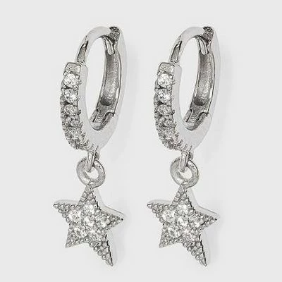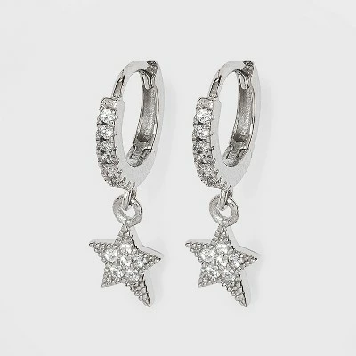 Add a bit of oomph to your casual or dressy outfits with these Sterling Silver Cubic Zirconia Huggie Hoop Earrings from A New Day™. This pair of jewelry earrings, showcasing a huggie design with cubic zirconia accents along with a cubic zirconia cross dangling below make every outfit glisten with glamour. The simple hinge closure gives you a secure fit for comfortable all-day wear. Complement with other accessories to carry you from casual daytime outings to nighttime glam with ease.