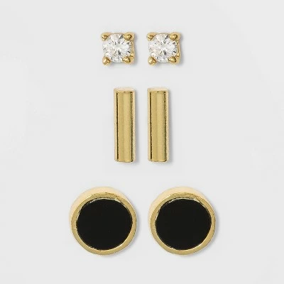 You’ll love the delicate good looks of the Sterling Silver Cubic Zirconia and Onyx Stud Earring Set from A New Day™. This set includes three pairs of minimalist stud earrings in different shapes and sizes, and they’re all set on post hardware with bullet-clutch backs for comfortable, secure wear. Included are a pair of prong-set cubic zirconia earrings, a pair of bezel-set onyx earrings and a pair of simple bar stud earrings, all in a dainty, wearable size that will dress up or down with ease. The coordinating styles mean it’s easy to pair them up for a bit of impact, but they also look fantastic worn solo for an everyday look you’ll love.