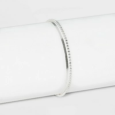 Bring simple and stylish shine to a wide variety of outfits when you add the 2-Piece Sterling Silver with Snake Chain and Beaded Chain Bracelet Set from A New Day™ to your jewelry box. This set of two sterling silver bracelets offers a uniform shiny finish, and two different chain designs for a look that works well together or separately. Both the snake chain and beaded chain feature lobster claw clasps for easy fastening that provides a secure fit on your wrist, and the simple style makes them great whether you wear one at a time or stack them both among an armful of bangles and baubles.