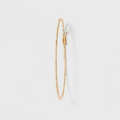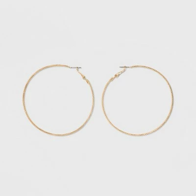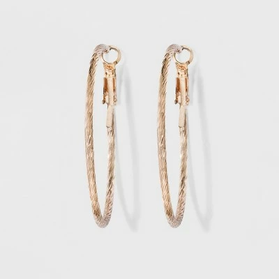Show off your cool-casual flair with these simple and stylish Textured Hoop Earrings from A New Day™ making a versatile addition to your jewelry collection. Simple and elegant, these gold-tone hoop earrings sport a twisted pattern with delicate detailing on the exterior for subtle sparkle and a touch of glam. These round hoop earrings feature post-and-lever closures to lock them neatly in place. Pair with a flowy cotton skirt and peasant blouse combo for laid-back appeal, or slip them on with a maxi dress, a statement neckpiece and upswept hair for dressy flair.