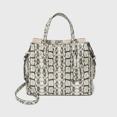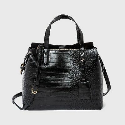 Take your belongings with you when you’re out and about by carrying this Triple Compartment Satchel Handbag from A New Day™. This satchel handbag comes with triple compartments along with interior pockets to offer plenty of space for your cosmetics, phone and other belongings. The main compartment has a zipper closure while the other two compartments have snap buttons to help keep the contents secure. Showcasing an alligator skin texture for eye-catching appeal, this black handbag is adorned with a gold-tone zipper closure for a chic look. Plus, you can carry it multiple ways using the double handles and an adjustable strap.