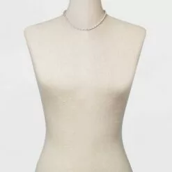 Add elegant shine to your everyday or evening looks with this Silver Twisted Chain Short Necklace from A New Dayâ„¢. This short curb chain necklace brings statement style to your jewelry accessories. It features a twisted rope design in a shiny silver finish for a braided textured effect that goes well with any outfit. This fashionable necklace comes with a classic lobster clasp closure for secure and easy wear. You can wear this necklace on its own or paired with a favorite pendant or charm for a personalized finishing touch.