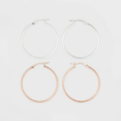 Glam up your looks with the Two-Tone Sterling Silver Hoop Fine Jewelry Earrings from A New Day™. This earring set includes two pairs of hoop earrings in different sizes and tones, so you’ll have the right accent for any occasion. Finished in either silver or rose gold, the hoop earrings are nickel-free and tarnish-resistant for durable, comfortable wear.