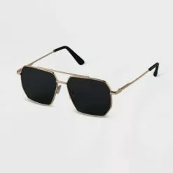 Give your accessory collection a fashionable update with these Metal Geo Aviator Sunglasses from A New Dayâ„¢. These sunglasses sport a stylish geo aviator shape that flatters a variety of face shapes and hairstyles, and they feature a metal frame in an attractive gold finish for a fashionable look that’s easy to style. Lightweight construction offers a comfortable fit, while UV protection helps keep your eyes safe from the sun. Throw them on with everything from a jeans-and-tee combo to a tiered dresses for a perfectly sleek finishing touch.