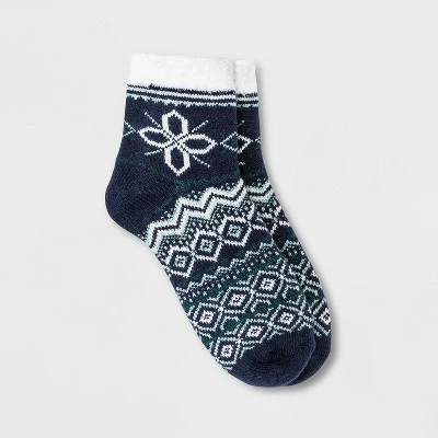 Keep your feet warm and comfortable with the Women’s Snowflake Double Lined Cozy Ankle Socks – A New Dayâ„¢ Navy 4-10. These ankle socks are perfect to couple with boots or sneakers. The graphic print on the body add a splash of fun to your outfit, to help you create your own unique look.