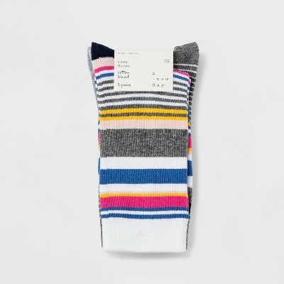 Go about your day in comfort and style with the Women’s Striped 3pk Crew Socks from A New Day™ Blue/Gray 4-10. The lightweight construction with added spandex provides all-day stretchy comfort to your feet, while the design makes them great for pairing with loafers, sneakers, boots and more to suit your style.