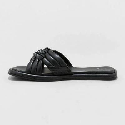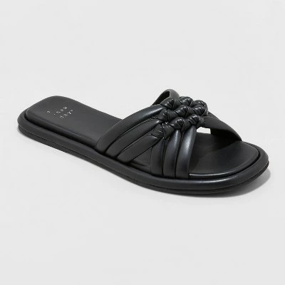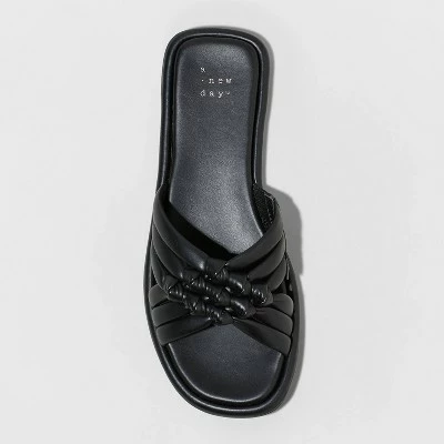 The Dulce Padded Knot Slide Sandals from A New Day™ will make a great go-to in your warm-weather wardrobe. These slide sandals feature a breezy open-toe design that makes for a cool, airy fit and padded knotted crisscross instep strap to help keep them in place on your foot while adding a standout finishing touch to your look. Pair with jeans and a scoop-neck tee or a breezy maxi dress and denim jacket to meet up with friends.