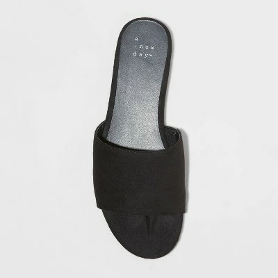 These Heidi Slide Sandals from A New Day™ make a stylish pick in your warm-weather closet. The simple yet striking slide sandals feature a comfy construction for a great all-day feel, and they have a broad strap to help keep them in place on your foot. With the open design offering cool comfort and a versatile look that pairs perfectly with everything from shorts to sundresses, these slip-on slide sandals will quickly become a go-to choice in your warm weather wardrobe.