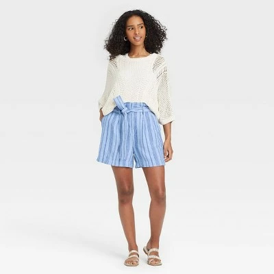 Add chic stripes to your laid-back look with these High-Rise Paperbag Shorts from A New Day™. These striped paperbag shorts make a chic choice in your casual wardrobe. Cut to a flattering high-waisted fit made from a breathable fabric, they’re perfectly comfortable to wear on warmer days. The fly hook and zipper closure along with a matching tie belt around the waist helps to provide you a secure fit, while the side and back pockets add a dash of functional style. Pair with everything from simple tees to printed blouses to create a fresh look.