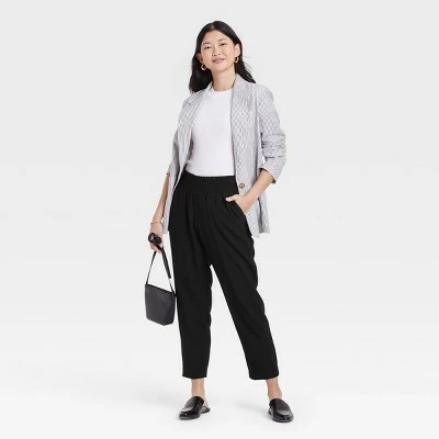 Move through your warmer-weather days in effortless style with these High-Rise Ruffle Waisted Pull-On Ankle Pants from A New Day™. Showcasing a ruffled waist for a casual look, these relaxed-fit pants are crafted from soft fabric with a linen weave and sport an ankle length for breezy style. Functional front pockets let you store on-the-go essentials, while the flattering high-rise elastic waistband allows for comfort as you move through your day. Just tuck in a plain tee and layer with an open-front cardigan for a cool take on your day.
