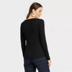 Update your wardrobe basics with this Long-Sleeve V-Neck Rib T-Shirt from A New Day™. This long-sleeve T-shirt in a solid color makes a go-to pick for easy pairing with a range of year-round casual outfits. Styled in a regular fit, it features a basic V-neck and a ribbed finish for a timeless look. The soft fabric with a hint of stretch ensures a comfortable and flexible fit. You can coordinate it with different bottoms and match with layering pieces to create a range of versatile styles.