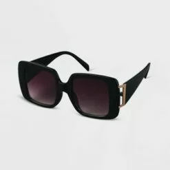 Bring retro style to your eyewear collection with these Retro Square Sunglasses from A New Day™. These plastic women’s sunglasses make a stylish eyewear accessory. They feature a solid-colored, full-rim frame in a large retro square shape, along with gold metal accents on the sides for added shine. The lightweight construction offers comfortable all-day wear, while the hinged temples and molded nose rest ensure a perfect stay-put fit. Plus, the UV-resistant properties help to protect your eyes from harmful UV rays.