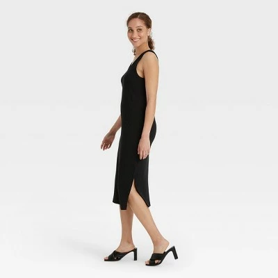Express your cool style while maintaining the comfort you love with this Rib-Knit Tank Dress from A New Day™. This rib-knit midi dress is made from soft, stretchy fabric for a breathable fit — making it perfect for warmer weather wear. A regular fit silhouette with a scoop neckline allows for a lovely drape over your figure, along with a slit at the side that adds a touch of chic detail and extra freedom of movement. Slip into your favorite pair of canvas sneakers for easy off-duty style, or amp it up with wedges and statement hoop earrings.
